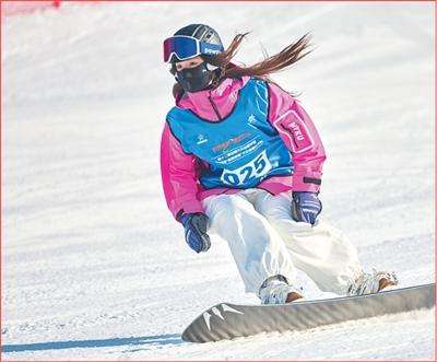 参赛者在湖北宜昌市兴山县昭君国际滑雪场进行滑雪比赛。