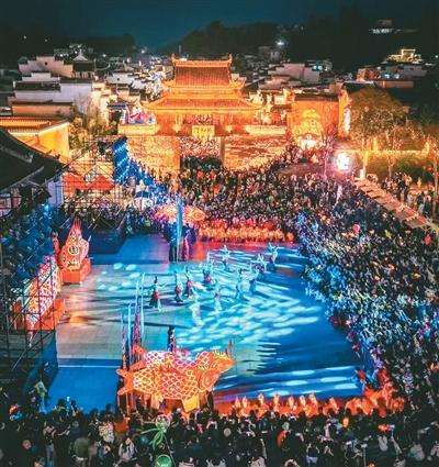 徽州古城的《大鱼徽州》鱼灯演艺秀吸引大量观众。程子伟摄