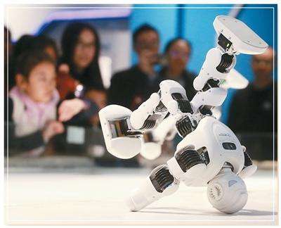 江苏省扬州科技馆内,观众在观看机器人跳舞。孟德龙摄(人民视觉)