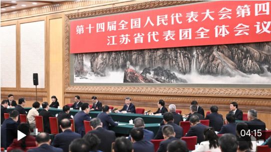 这是总书记2023年初在江苏全票当选十四届全国人大代表后,连续第四年参加本团审议。