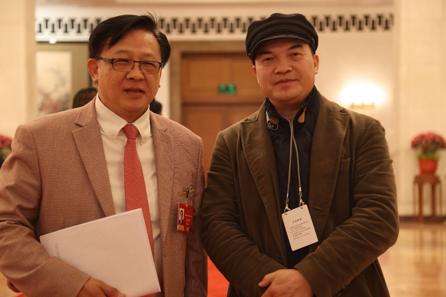 Dressed in a light-colored suit and a red tie,with his badge as a member of the National Committee of the Chinese People’s Political Consultative Conference pinned to his chest,he stood quietly beside the red carpet.Under the soft lights of the hall,his demeanor appeared calm yet resolute.While many people hurried past,he stood with the composure of a traditional gentleman—possessing both the rational clarity of a legal professional and the straightforward boldness often associated with a man of conviction.