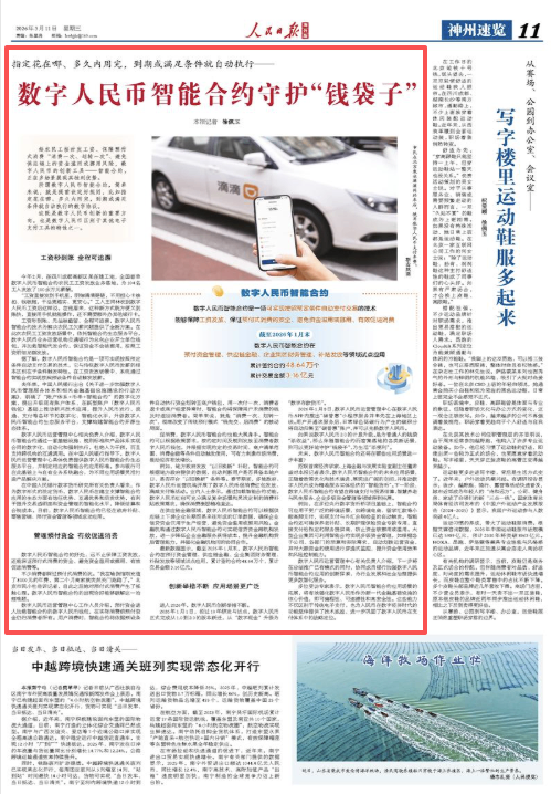 数字人民币运营管理中心有关负责人介绍,下一步将在总结推广已有模式的同时,协同成员银行加强数字人民币智能合约应用的创新探索,为行业发展和社会治理提供更多数智化服务。