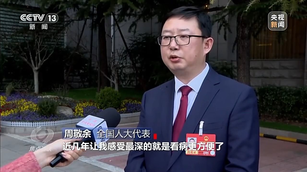 全国人大代表周敬余:近几年,让我感受最深的是看病更方便了,医保报销比例也比以前提高了,像跨省异地就医可以直接结算。