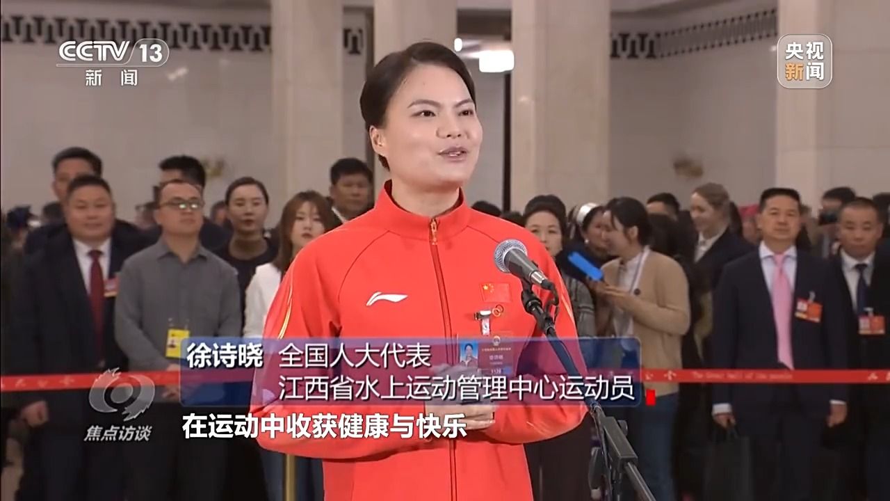 全国人大代表、江西省水上运动管理中心运动员徐诗晓:我希望越来越多的人和我一起加入到运动当中来,和我一起走起来、动起来,在运动中收获健康与快乐。