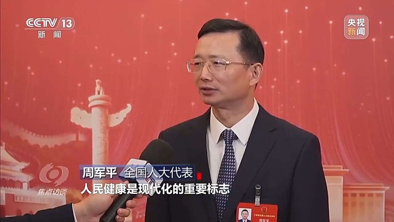 全国人大代表周军平:人民健康是现代化的重要标志,作为来自住建系统的人大代表,我深感责任重大,让每一处住房都成为健康生活的重要载体,让老百姓在宜居中感受到健康的温度。