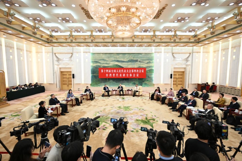 3月8日,十四届全国人大四次会议台湾代表团在北京人民大会堂举行开放团组会议。(图片来源:中新社)