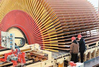 3月16日,工人在山东省临沂市平邑县一家企业板材生产线上工作。