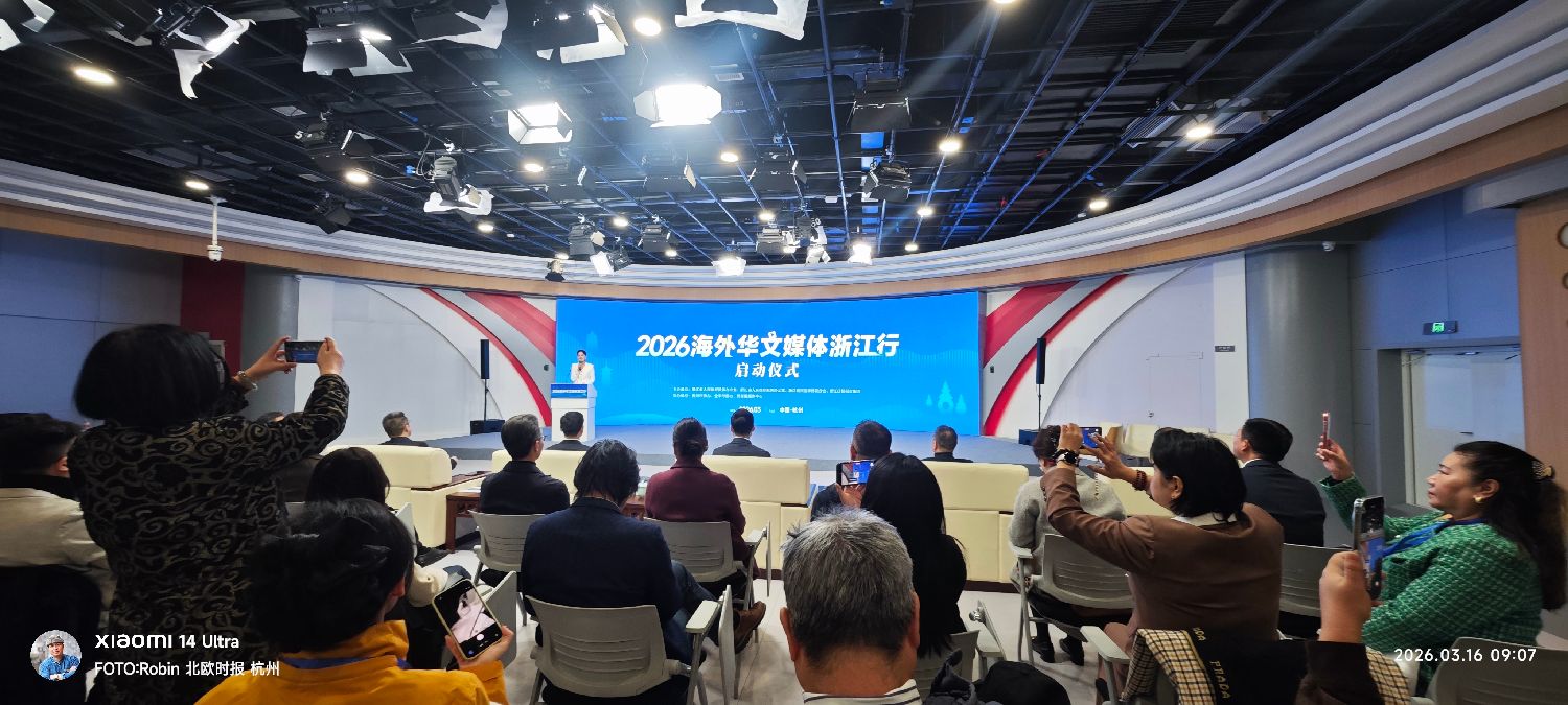 3月16日,由国务院侨务办公室支持、浙江省侨办等单位主办的“2026海外华文媒体浙江行”在杭州正式启动。来自14个国家和地区的20多家海外华文媒体负责人齐聚之江大地,在全国“两会”刚刚闭幕之际,开启一场以观察中国、解读浙江为主题的媒体行。