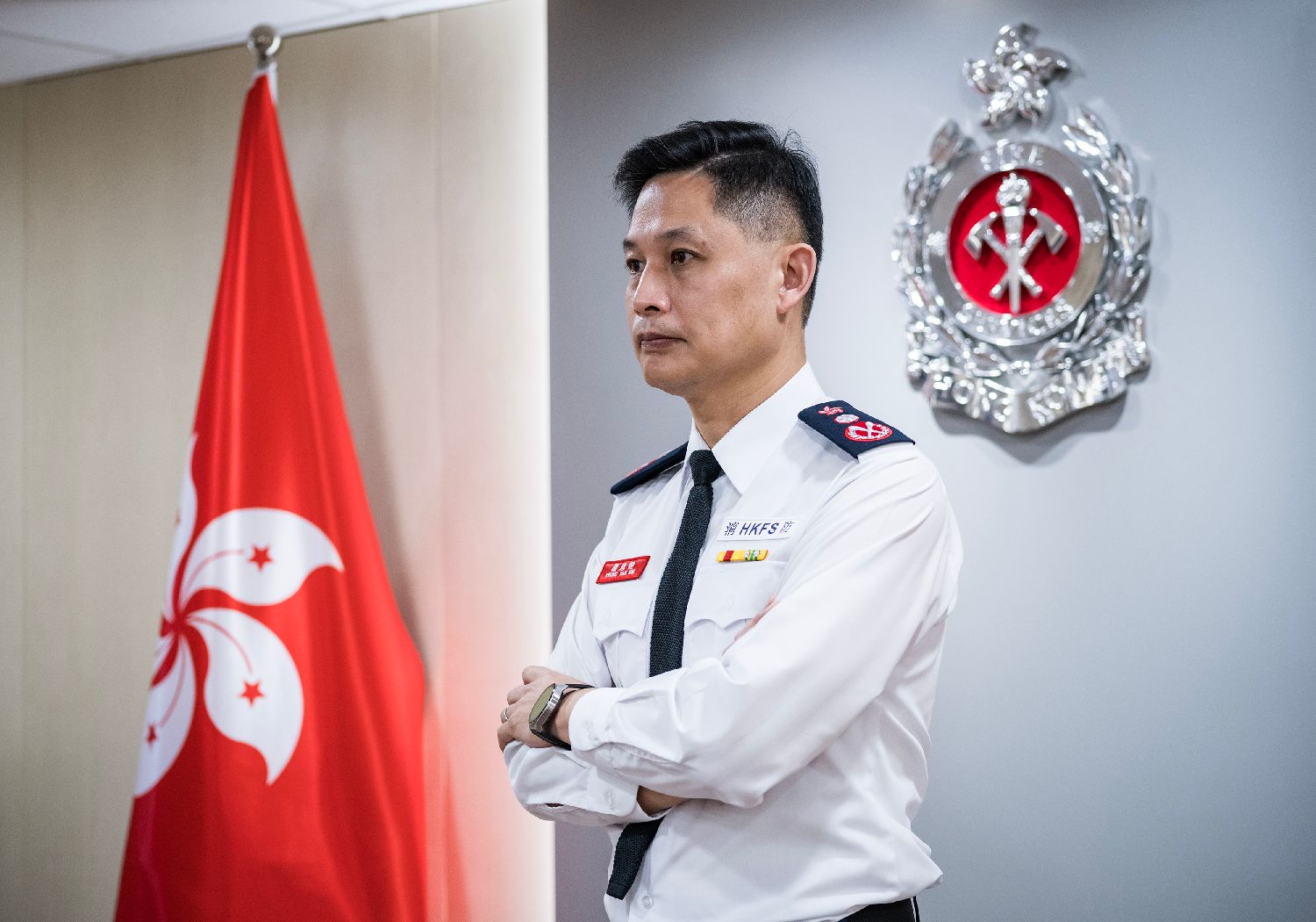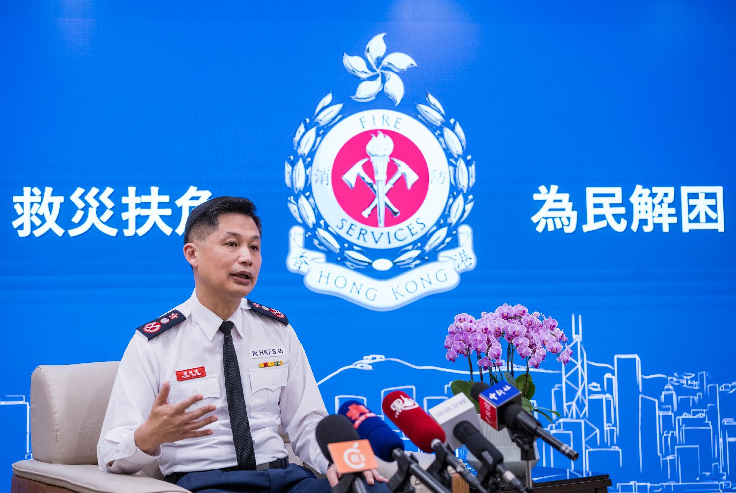 近日,香港特区政府消防处处长杨恩健接受中新社等媒体采访。(图片来源:中新社)