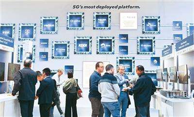 日前,2026年世界移动通信大会在西班牙巴塞罗那举办。图为人们在芯片技术展台参观。