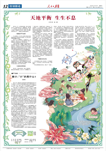 春分,以天文上的均平为起点,以大地上的物候为回响,以人间的烟火为归宿。从精确的节气刻度,到生动的农耕实践,再到丰富的文化记忆,春分告诉我们须寻得一份平衡,守得一份从容。当春分的阳光普照,万物在温暖中勃发,我们也在节气更迭中,延续着生生不息的文化根脉。(本报记者 赵 珊)