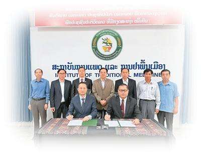 邓良慧(前排左一)与老挝卫生部签约合作。