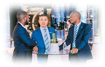 2025年9月,博茨瓦纳经贸投资交流会在北京举行,吸引来自数字科技、绿色能源、智能制造等领域的中非企业参与。图为南庚戌(中)与外宾交流。
