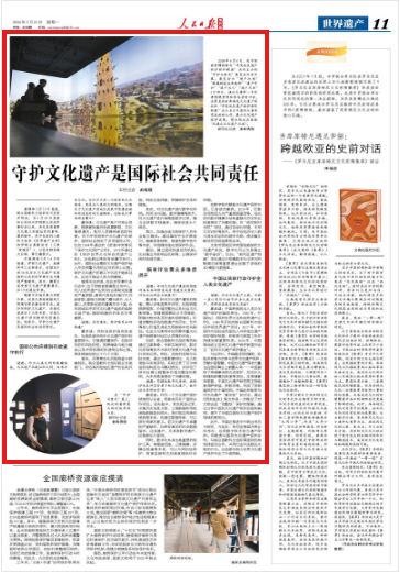 詹长法:中国积极担当人类文化遗产保护的国际责任,1985年,中国加入《保护世界文化和自然遗产公约》,1986年开始向联合国教科文组织申报世界遗产项目;2017年,中国作为创始成员国加入冲突地区遗产保护国际联盟,积极参与联盟工作并持续发挥重要作用;2023年,中国推动成立亚洲文化遗产保护联盟并设立“亚洲文化遗产保护基金”。