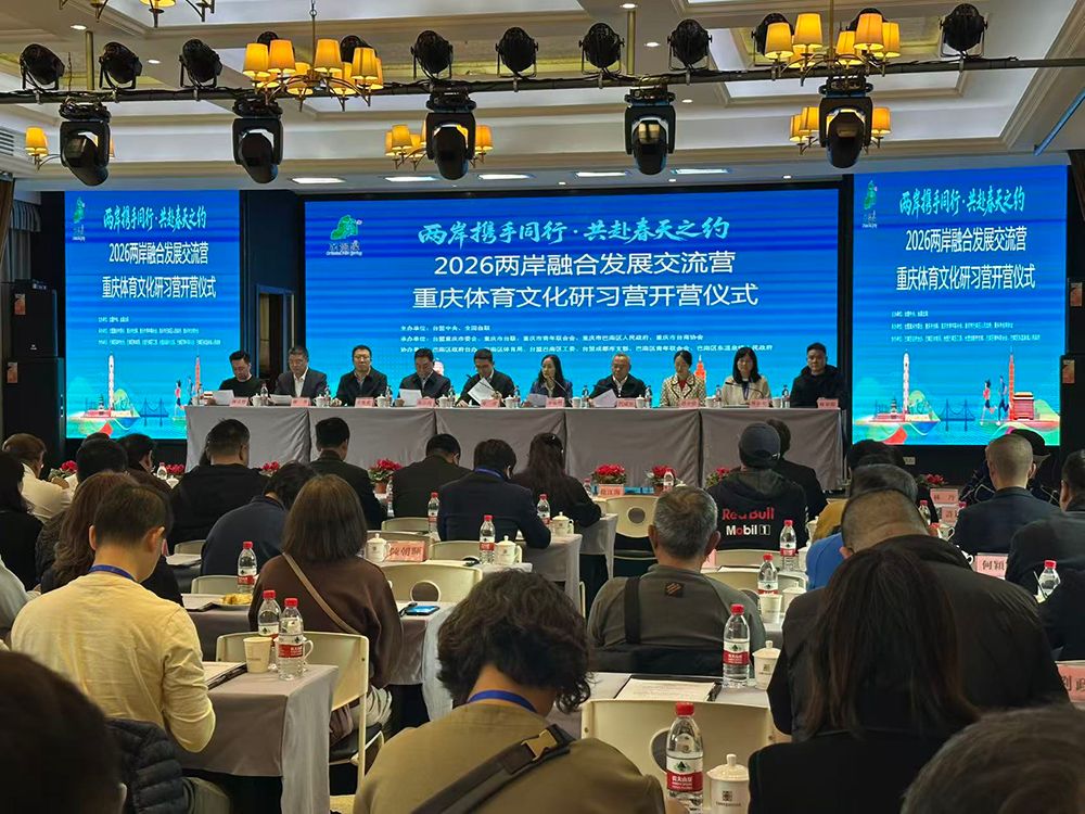 2026年两岸融合发展交流营重庆体育文化研习营21日在渝开营。活动以“两岸携手同行·共赴春天之约”为主题,吸引70余名台湾青年及各界人士参与。