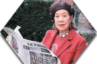 72岁的银发博主邓红在法国巴黎街头读报。受访者供图
