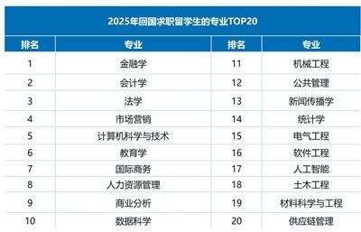 2025年回国求职留学生的专业前20。启德教育供图