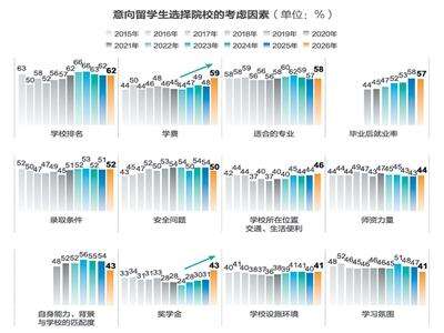 新东方相关负责人介绍,受全球经济环境影响,留学家庭的择校逻辑也更趋理性,更加注重“性价比”。学费跃升为第二大择校因素,奖学金政策成为重要考量维度。同时,学校排名、适配专业与毕业后就业率依然关注度高,反映出留学家庭在追求优质教育资源的同时,更注重成本控制与就业回报,兼顾质量与成本兼顾。