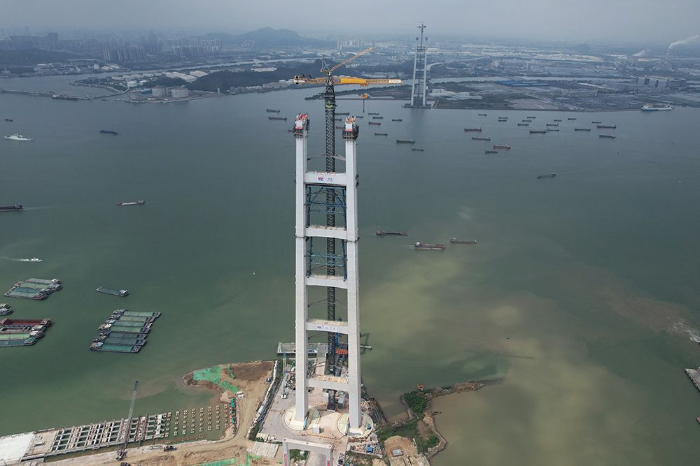 大湾区核心枢纽工程狮子洋大桥双主塔封顶