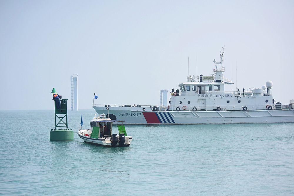 “改线后的临时航道全长约3.93公里,通过‘双孔单向通航’模式,可满足厦金‘小三通’客船通航需求,实现桥梁施工与水上通航‘两不误、双保障’。”厦门海事局通航管理处副处长叶志民说。