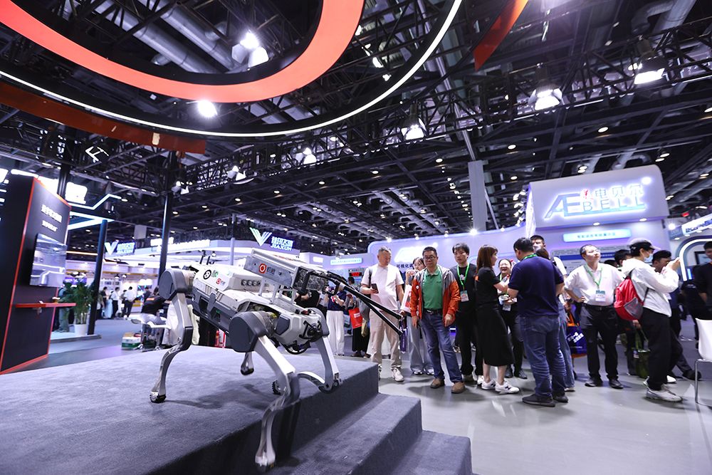 应急救援机器狗吸引观众。(图片来源:中新社)