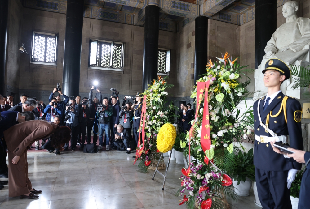 4月8日上午,中国国民党主席郑丽文一行拜谒南京中山陵。(图片来源:中新社)