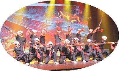 马尔科带领武馆弟子表演《大刀进行曲》舞蹈。