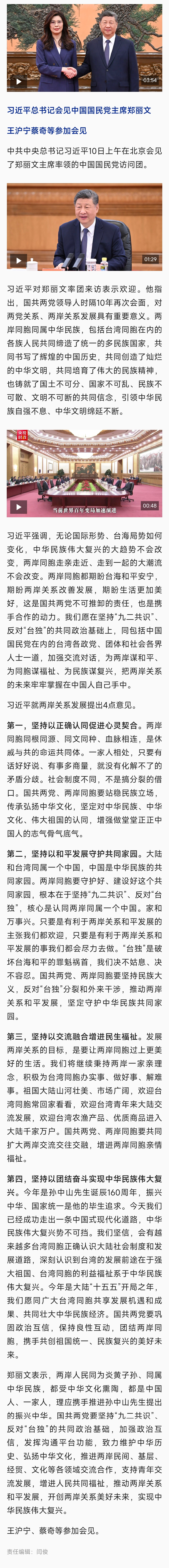 视频丨习近平总书记会见中国国民党主席郑丽文