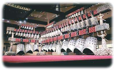 穿过湖北省博物馆“曾侯乙”展厅的门廊,气势恢宏的青铜编钟赫然映入眼帘。