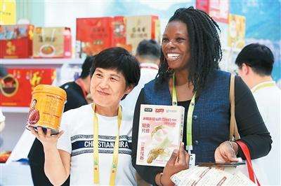 在第六届中国国际消费品博览会河南展区,中外参展客商合影。