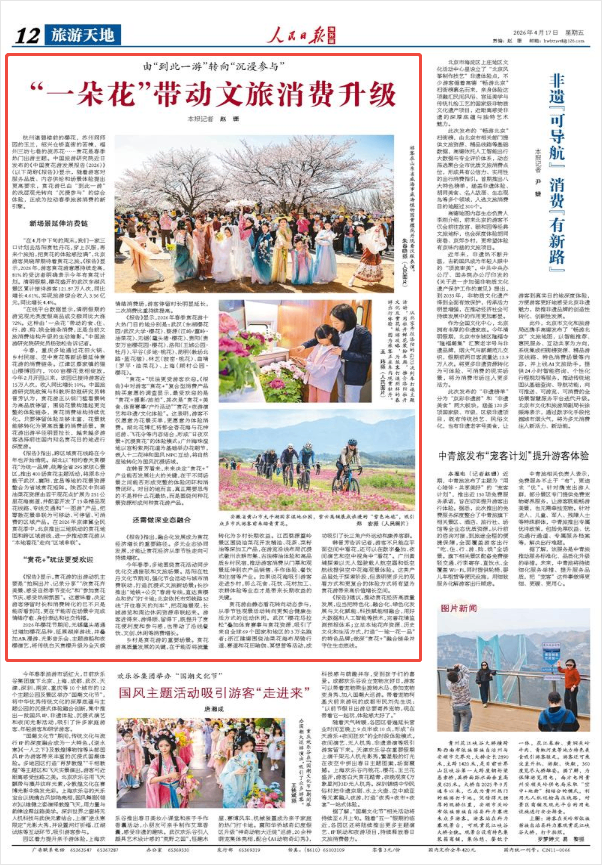“在线平台数据显示,清明假期的游览观光类度假商品成交额同比大涨72%。这种由‘一朵花’带动的食、住、行、游、购、娱全链条消费,正是当前文旅消费结构升级的生动缩影。”中国旅游研究院研究员杨劲松告诉记者。
