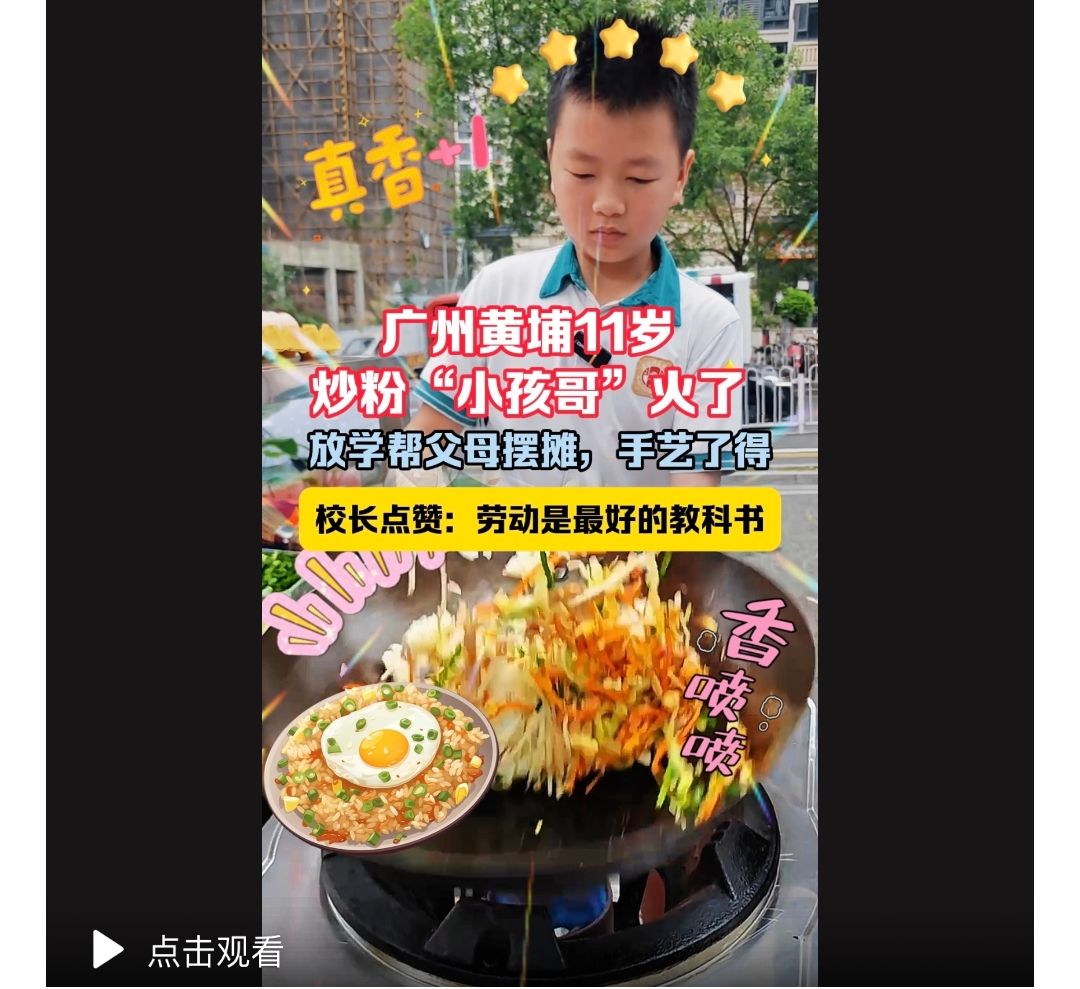 劳动从来不是课本上的一句口号,教育也不只是课堂上的灌输,它们都存在于每一个平凡的日子里,存在于生活的细节里。这个五年级的少年用课余时光颠锅炒粉,在劳动里学到了担当,而这份担当将成为他未来人生中宝贵的财富。
