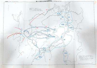 中国人民抗战胜利受降纪念馆馆长吴建宏介绍,这9张图纸从日方视角记录了1945年4月9日至6月7日发生在湘西雪峰山地区的湘西会战。由于此战的核心目标是夺取芷江空军基地,日方称之为“芷江攻略战”,中方则称“芷江保卫战”或“雪峰山会战”。这是中国抗日战争正面战场的最后一次会战。