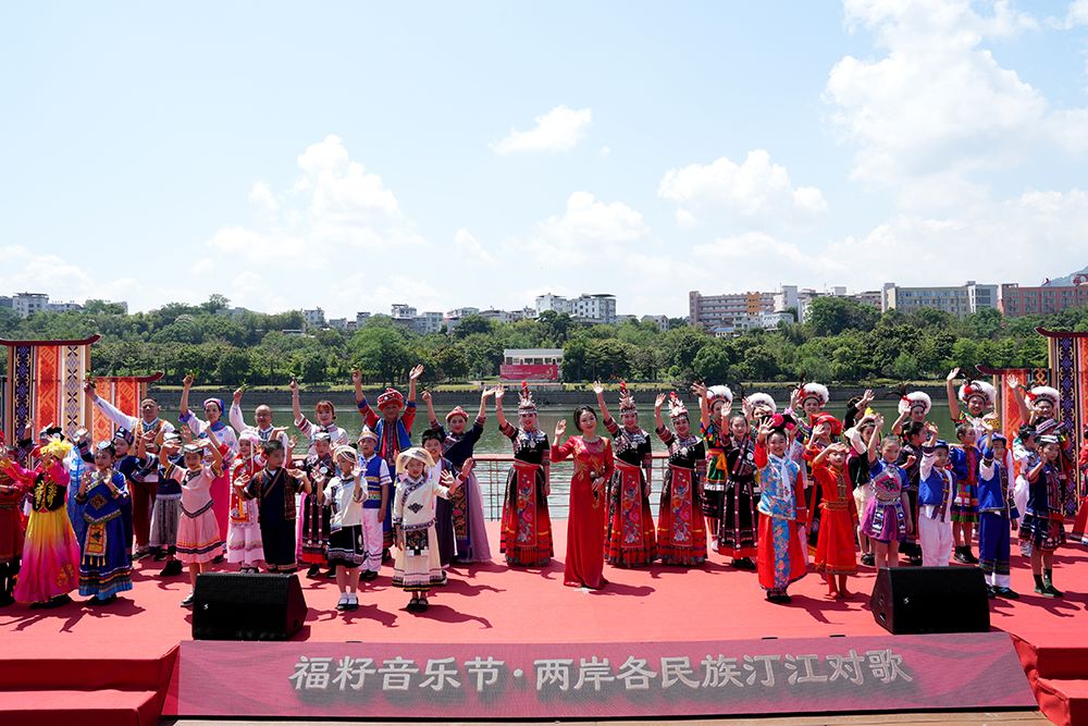 4月19日上午,福籽音乐节·两岸各民族汀江对歌在福建龙岩上杭汀江两岸温情开唱。(图片来源:上杭县供图/中新社)