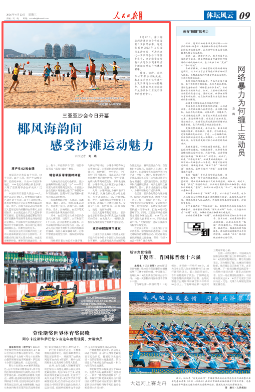 4月22日,第六届亚洲沙滩运动会将在海南三亚拉开帷幕。这是我国继2012年山东海阳亚沙会后,再次承办这一亚洲综合性沙滩体育盛会,也是海南自贸港封关运作后迎来的首个国际大型综合性体育赛事。