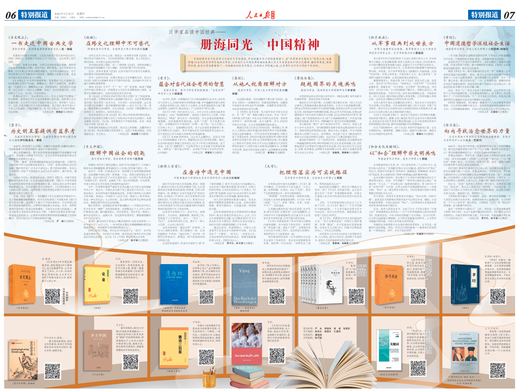 中国经典书目不仅是研习汉语言文字的载体,更是读懂中华文明的重要窗口。在“世界图书与版权日”到来之际,本报特邀10余位来自世界各地的汉学家,分享他们与中国经典结缘的故事以及从中品读出的中国文化精神。翻译即再造,朗读即共情。每位汉学家都推荐了一句感触深刻的书中箴言,以朗读之声跨越山海,让世界听见中华文明的千年回响。