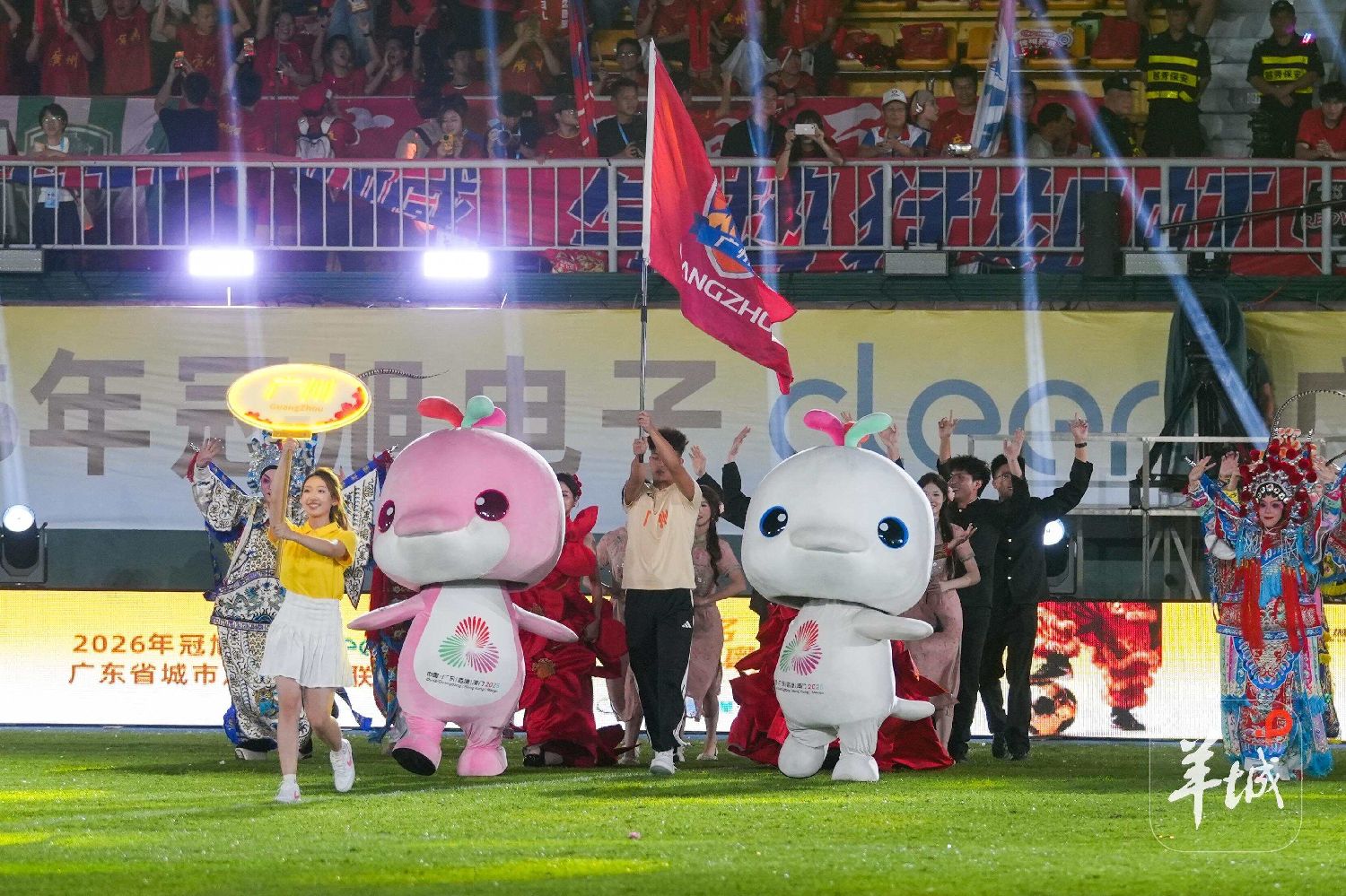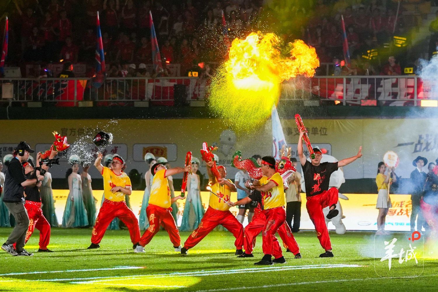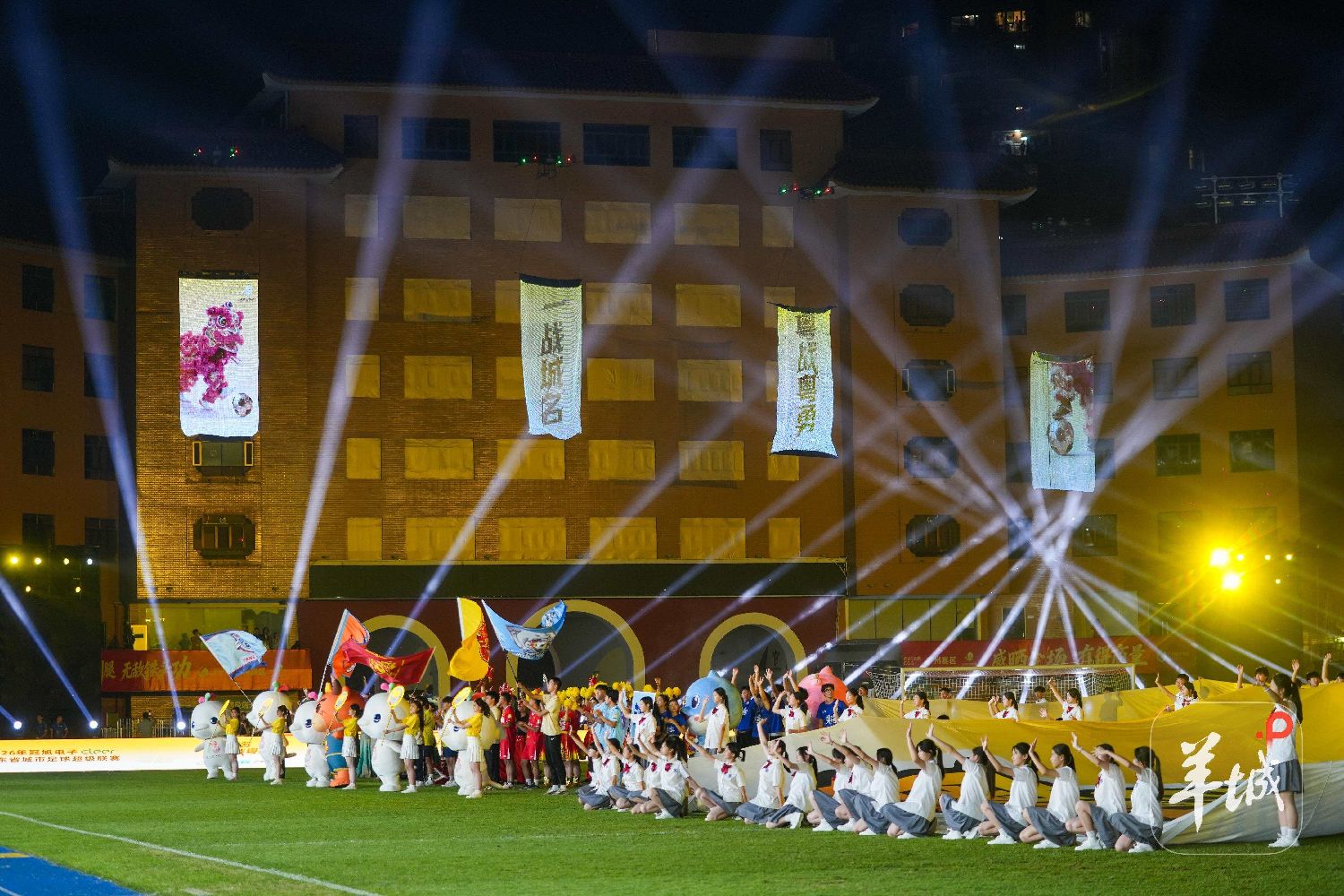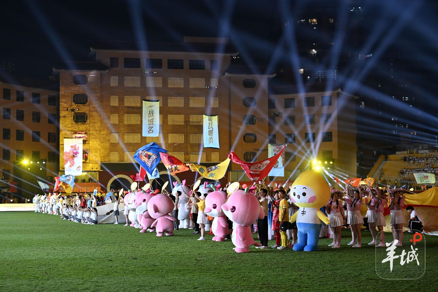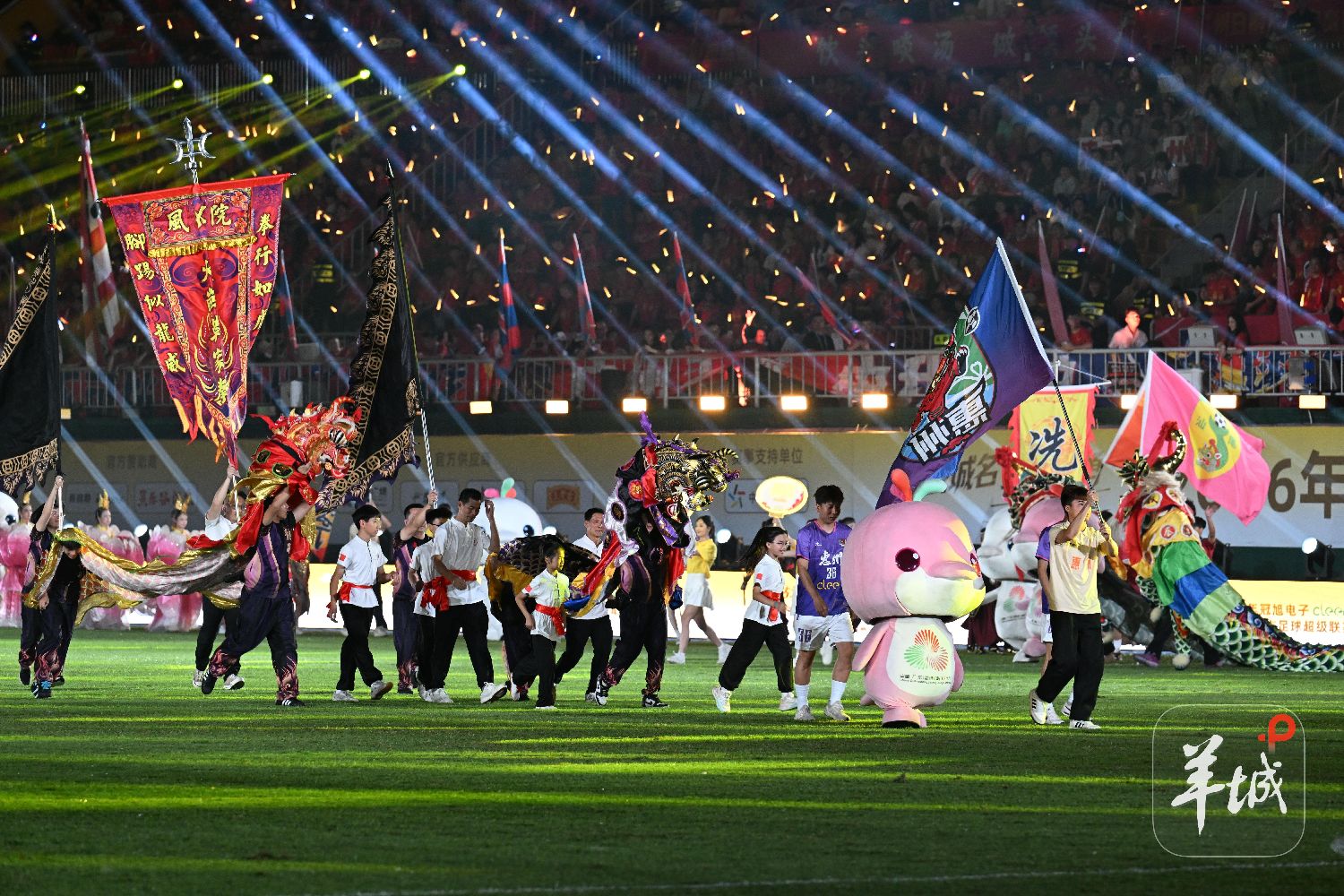 绿茵风华,绽放光彩!一城一韵、一队一景!在“大湾鸡”的引领下,在独具特色的说唱节奏中,21城代表队方阵分为东区、西区战队依次入场,以城市文化地标、文旅特色为主题,展现南粤多元城市魅力与足球活力,足球化身城市名片,串联起南粤大地的万千风华。