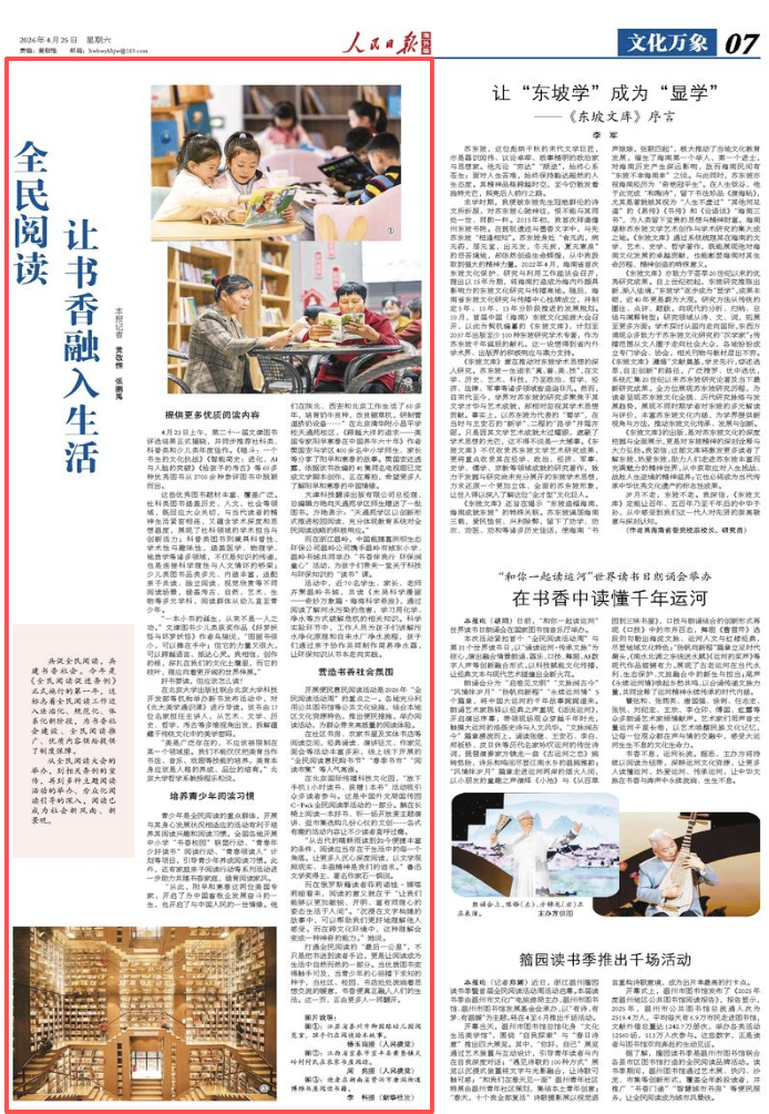 打通全民阅读的“最后一公里”,不只是把书送到读者手边,更是让阅读成为生活中自然而然的一部分。当优质图书变得触手可及,当青少年的心田播下求知的种子,当社区、校园、书店处处流淌着思想交流的暖意,书香便真正融入人们的生活。这一页,正由更多人一同翻开。(本报记者 黄敬惟 张鹏禹)