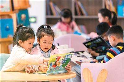 江苏省泰州市御园路幼儿园阅览室,孩子们在阅读绘本故事。